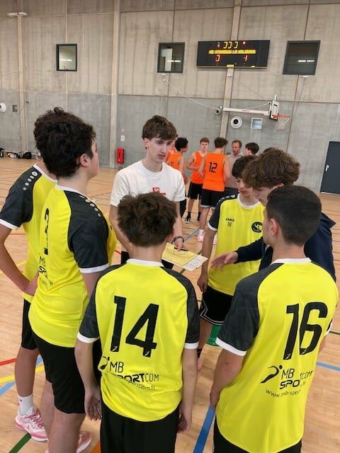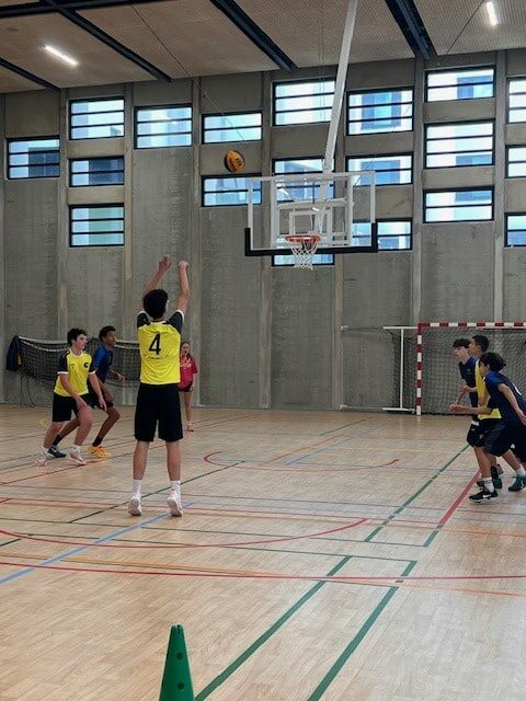 À l’issue de la conférence, les élèves partagent un entraînement avec les joueurs de la section Sport Adapté badminton.